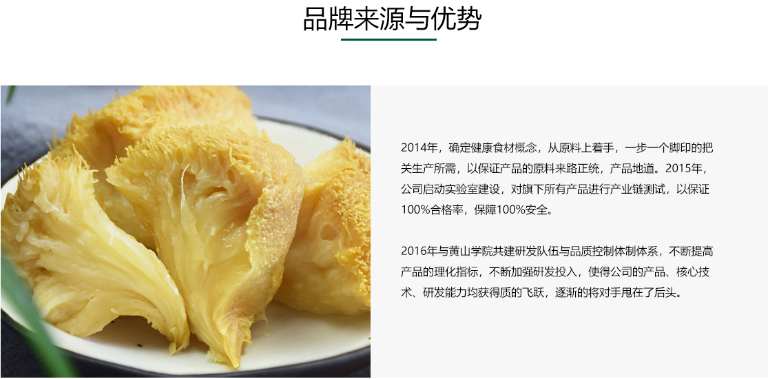 黃山市怡興農產(chǎn)品開(kāi)發(fā)有限公司,組建于2013年,是一家集健康食品禮贈團購、農產(chǎn)品電商、食材供應配送于一體的綜合性專(zhuān)業(yè)化企業(yè)。公司傾力打造“茂徽”健康產(chǎn)業(yè)鏈平臺,在多年的經(jīng)營(yíng)中采用品牌化作為支撐,結合垂直渠道運營(yíng),呈現出多樣化的極速發(fā)展態(tài)勢,先后獲得科技型中小企業(yè)、省級電子商務(wù)示范點(diǎn)、安徽省民營(yíng)科技企業(yè)和市農業(yè)產(chǎn)業(yè)化龍頭企業(yè)、市十佳電商企業(yè)、市級守合同重信用單位等諸多榮譽(yù)稱(chēng)號,并與臺灣新竹縣、日本大阪、合工大、黃山學(xué)院等形成了良好的產(chǎn)學(xué)研交流以及市場(chǎng)化合作。公司定位于“健康好產(chǎn)品,精致好服務(wù)”,立足“來(lái)自黃山,供應全球”的產(chǎn)業(yè)鏈,并立志“成為世界級農產(chǎn)品開(kāi)發(fā)企業(yè)”。圍繞“放心菜,茂徽在”的發(fā)展理念,與黃山學(xué)院共同推進(jìn)“食品安全質(zhì)量分析與保障體系”產(chǎn)學(xué)研,深入開(kāi)展研究關(guān)于放心食品的保障,為提供更加綠色和安全的食品打下堅實(shí)基礎。公司先后獲得授權發(fā)明專(zhuān)利1項,實(shí)用新型專(zhuān)利18項、外觀(guān)專(zhuān)利3項;軟件著(zhù)作權1項,作品著(zhù)作權6項。